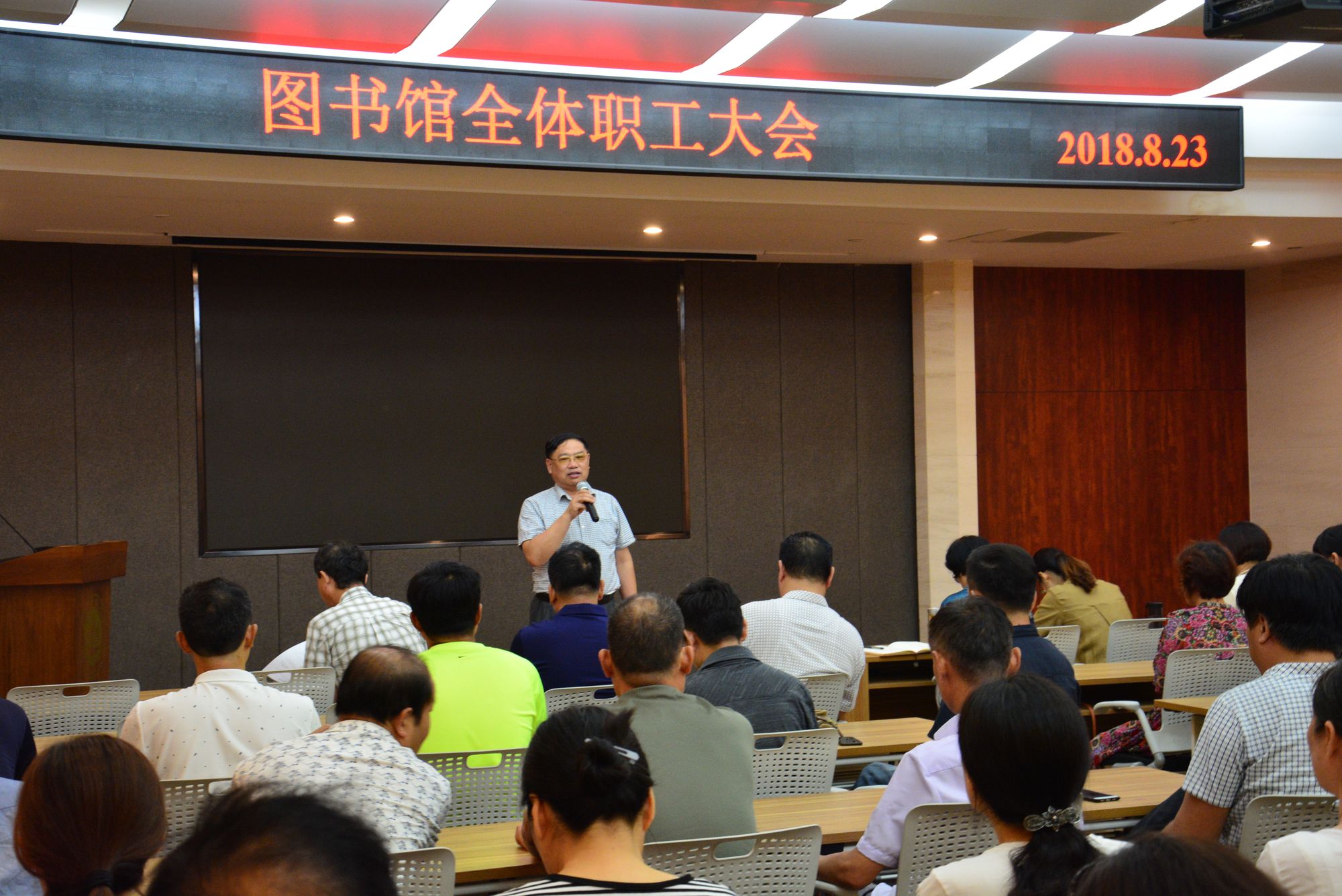 8月23日上午,图书馆在国重楼报告厅召开全体职工大会,总结暑期工作并部署新学期工作。