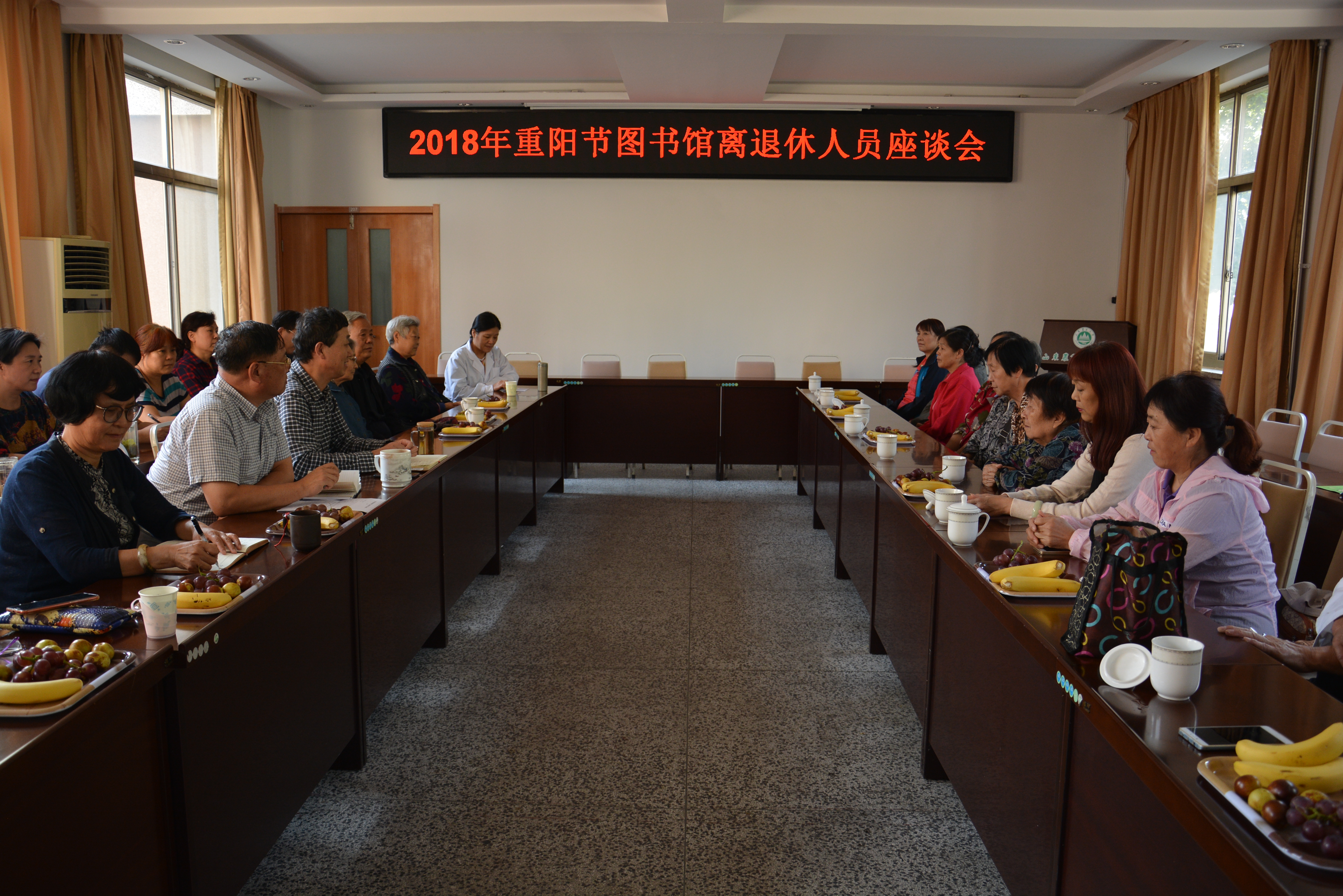 9月27日,图书馆召开2018年重阳节离退休人员座谈会。图书馆领导班子、各部室主任参加座谈,高景昌副馆长主持会议。