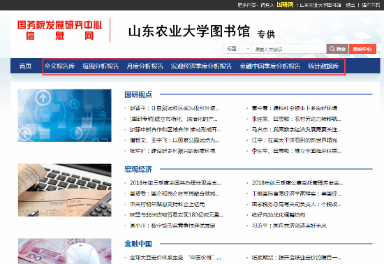 《国研网》由国务院发展研究中心信息中心主办,是中国著名的大型经济类专业网站,是面向领导者、投资者和学者提供经济决策支持的权威信息平台。该库以国务院发展研究中心丰富的信息资源和强大的专家阵容为依托,并与海内外众多著名的经济研究机构和经济资讯提供商紧密合作,全面整合中国宏观经济、金融研究和行业经济领域的专家学者以及研究成果。旨在为用户提供高端的管理决策和教学研究参考信息。我校订购该库的主要内容有国研视点、宏观经济、金融中国、行业经济、世界经济与金融评论、高校管理决策、宏观经济数据库、金融统计数据库(包括综合数据、货币银行、证券期货、保险数据)、宏观专题数据库(对外经济贸易数据库、产品产量数据库、工业统计数据库)、重点行业数据库之信息产业库。