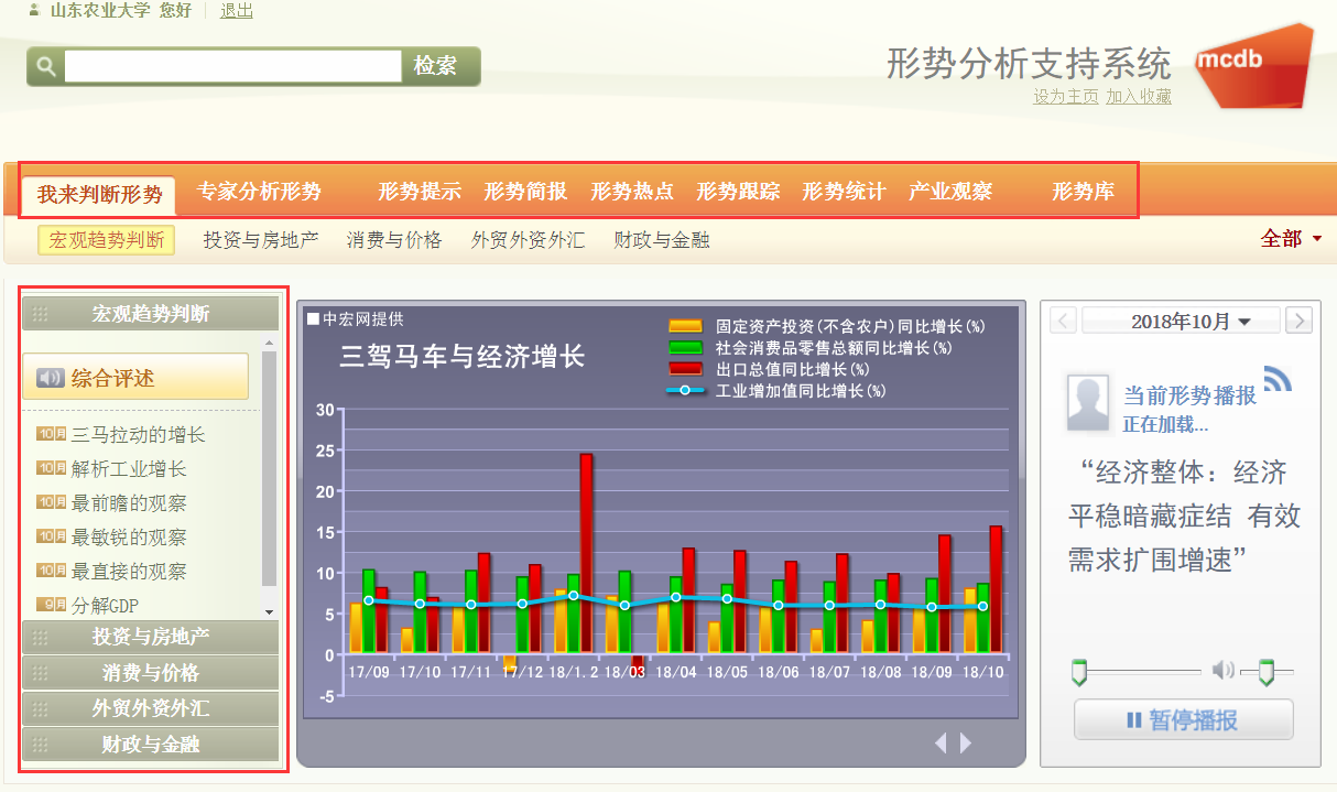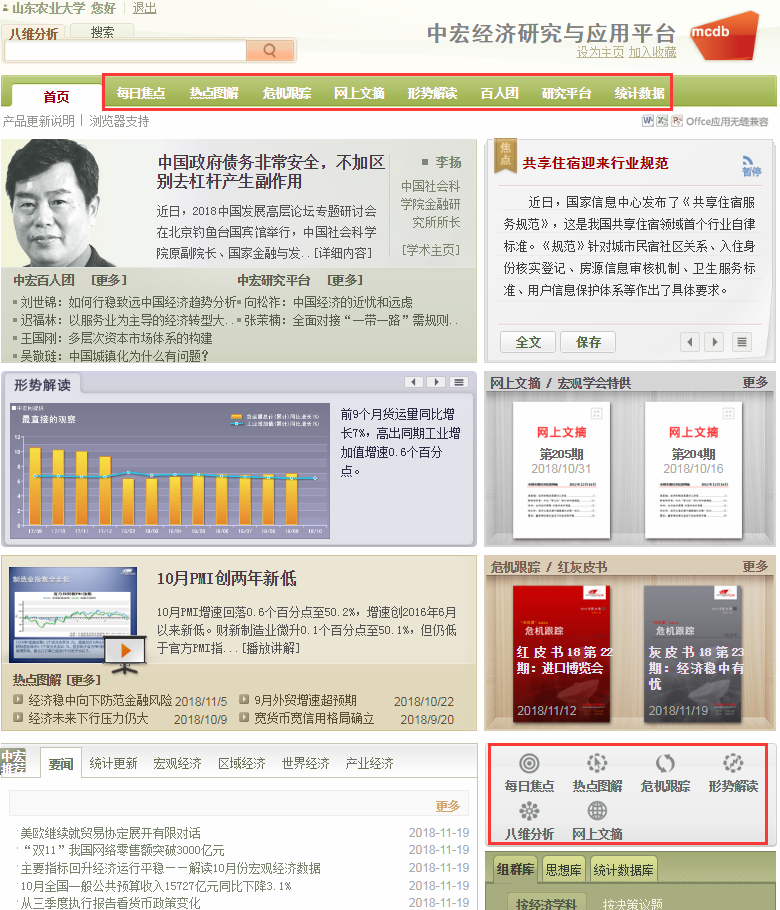 《中宏网》分为《中宏网-形势分析支持系统》和《中宏网-经济研究与应用平台》。