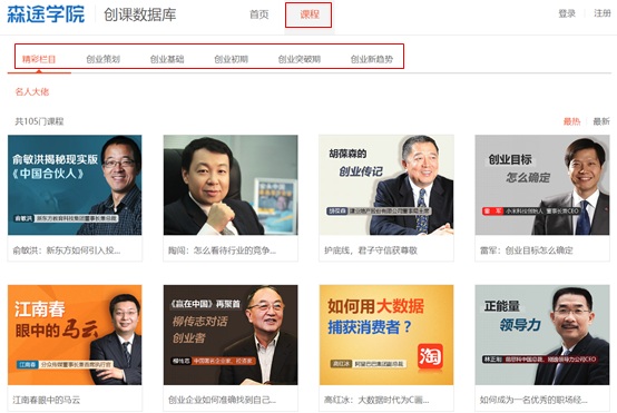 (1)讲师阵容庞大,包括马云、柳传志、刘强东、雷军等企业大佬资源,也包括行业专家以及草根创业者和学生创业者等初创者;