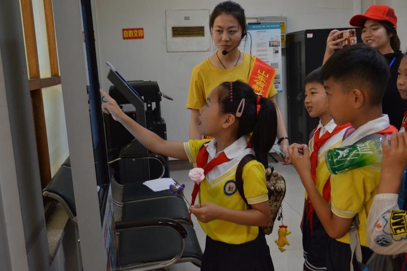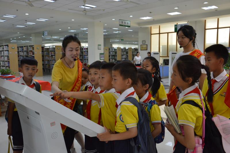 来到南校区图书馆,智能化的图书借阅设备及图书查询终端使小学生们感受到知识与科技的碰撞,让他们跃跃欲试;大学生志愿者详细亲切的讲解使他们沉醉在丰富的藏书中流连忘返。大学图书馆作为文献信息中心,以其博学、智慧、神圣的形象,在小学生的脑海中留下深深的烙印,督促和推动他们努力学习,积极进取,健康快乐成长。
