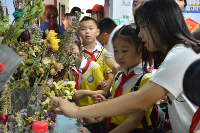 进入校园,小学生们踏着校史文化线的青石板,了解农大悠久历史,聆听我校发展成就,观赏校园多样景色,生态与功能完美结合的校园建筑给小学生们留下深刻印象;大学生创业孵化基地精美的手作、缤纷的标本及茶室的茗香带给小学生新奇的体验。在“大众创业,万众创新”的时代背景下,我校为广大学生精心打造创新创业平台,创造创业发展条件,取得累累硕果,通过对实际产品和荣誉成果的讲解,培养小学生们创新创业意识,锻炼创新创业思维。