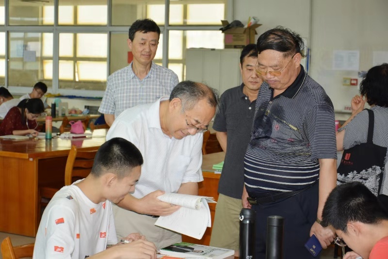 今年暑假,南北校区图书馆均实现了全部七周工作日的正常开放,时间由原来的14天增加到35天,为留校学生提供舒适的学习环境。王校长走进南校区二楼借阅室,在思政经典阅读专区前停下脚步,饶有兴趣的拿起一本繁体版的《习近平谈治国理政》翻了起来,指示图书馆的文献资源既要保证优势学科的需要,也要做好长线学科的规划。之后,王校长又来到三楼阅览室,看到这里坐满了复习考研的同学甚是欣慰,热心地询问学生们的学习状态,关心他们假期在校的生活情况,殷切地鼓励他们脚踏实地、追逐梦想。