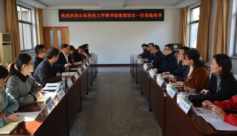 11月19日,山东科技大学图书馆崔然馆长、曲有刚书记一行九人来我校图书馆参观考察,图书馆班子及各部室主任参加了交流。