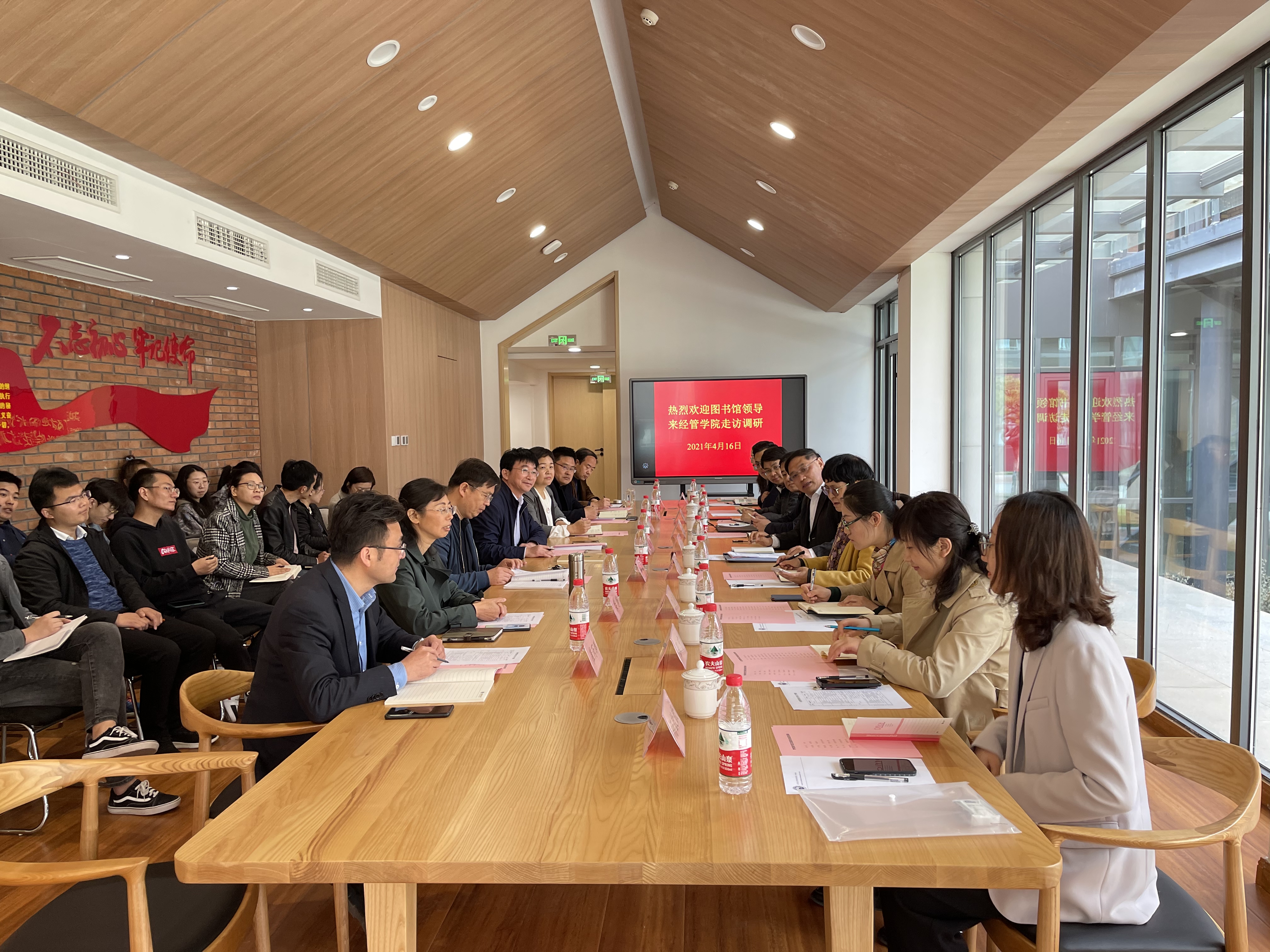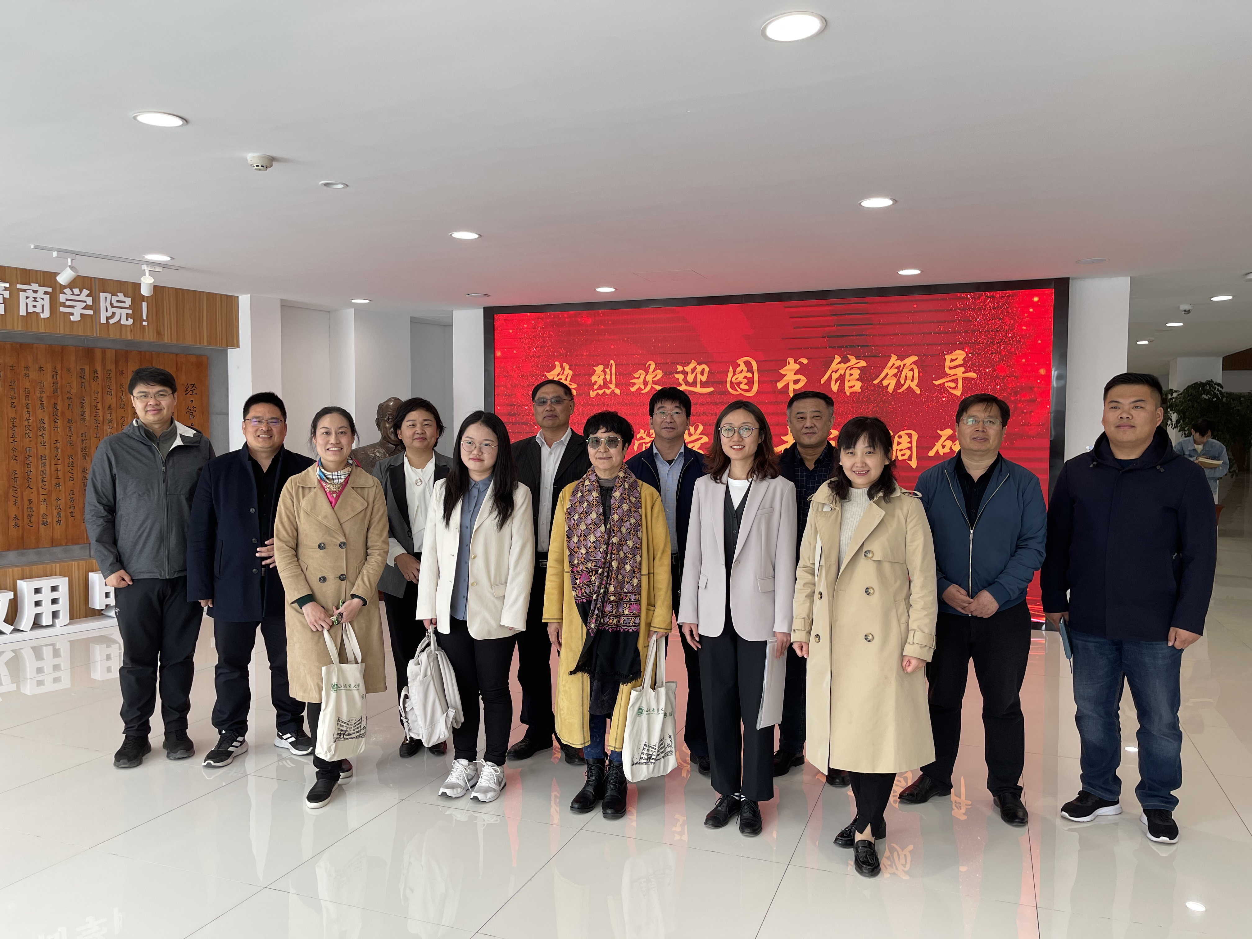 4月16日上午,盖会全馆长带领图书馆领导班子和办公室、情报研究中心、信息咨询、资源建设、系统建设等部门党员一行9人走进经管学院,开展“深入经管学院 推进学科服务”的“我为群众办实事”活动,全面对接学科和师生需求,助力学科和学院发展。
