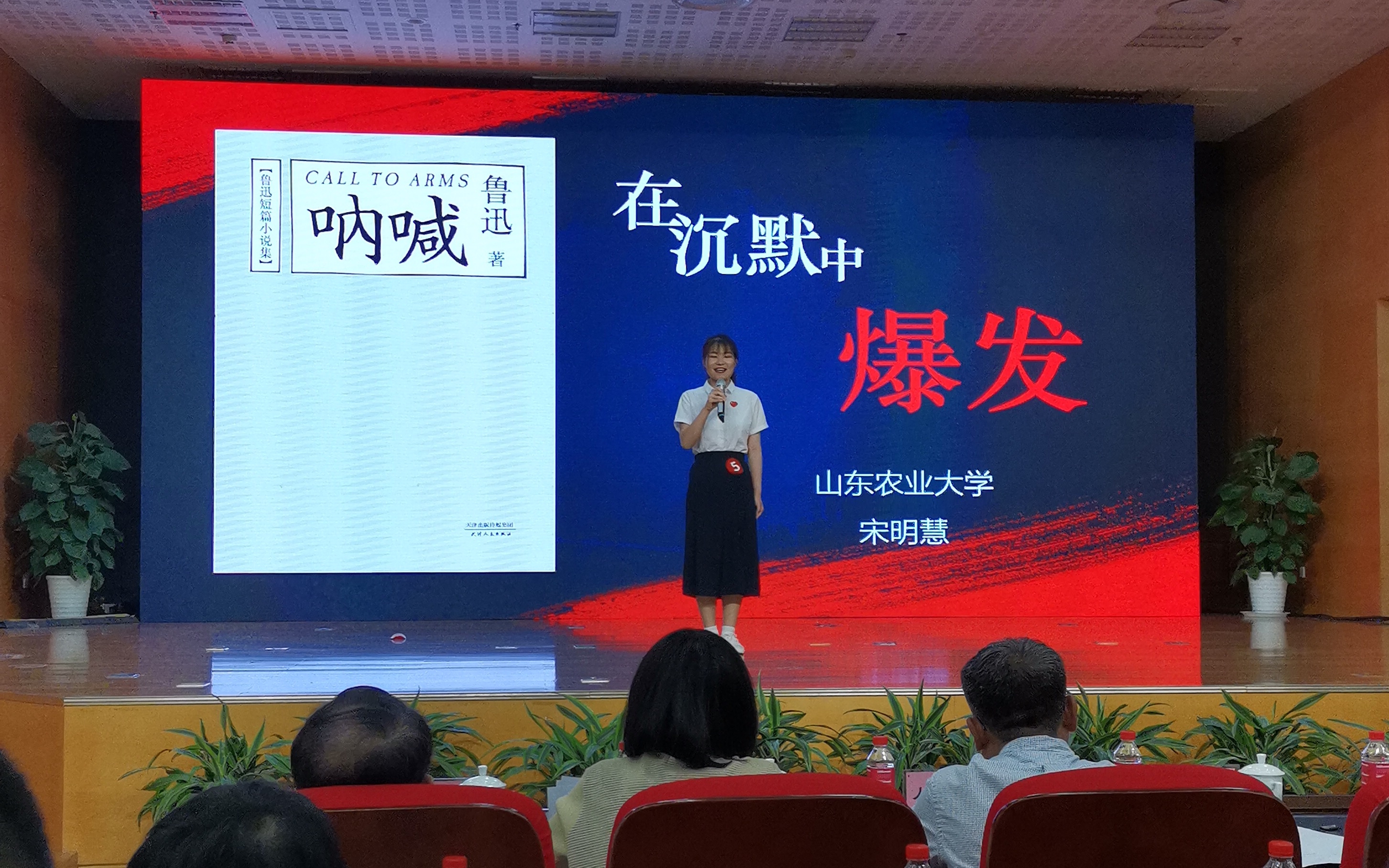 我馆高度重视此次活动,积极响应大赛号召,广泛宣传、精心筹备、认真组织选拔,通过举办图书馆第五届“夜读者——百年礼赞 逐梦征程”阅读推广大赛,选拔出优秀选手宋明慧同学代表参赛,结合自己阅读书目《呐喊》,以 “在沉默中爆发” 为演讲主题参加比赛,荣获三等奖。