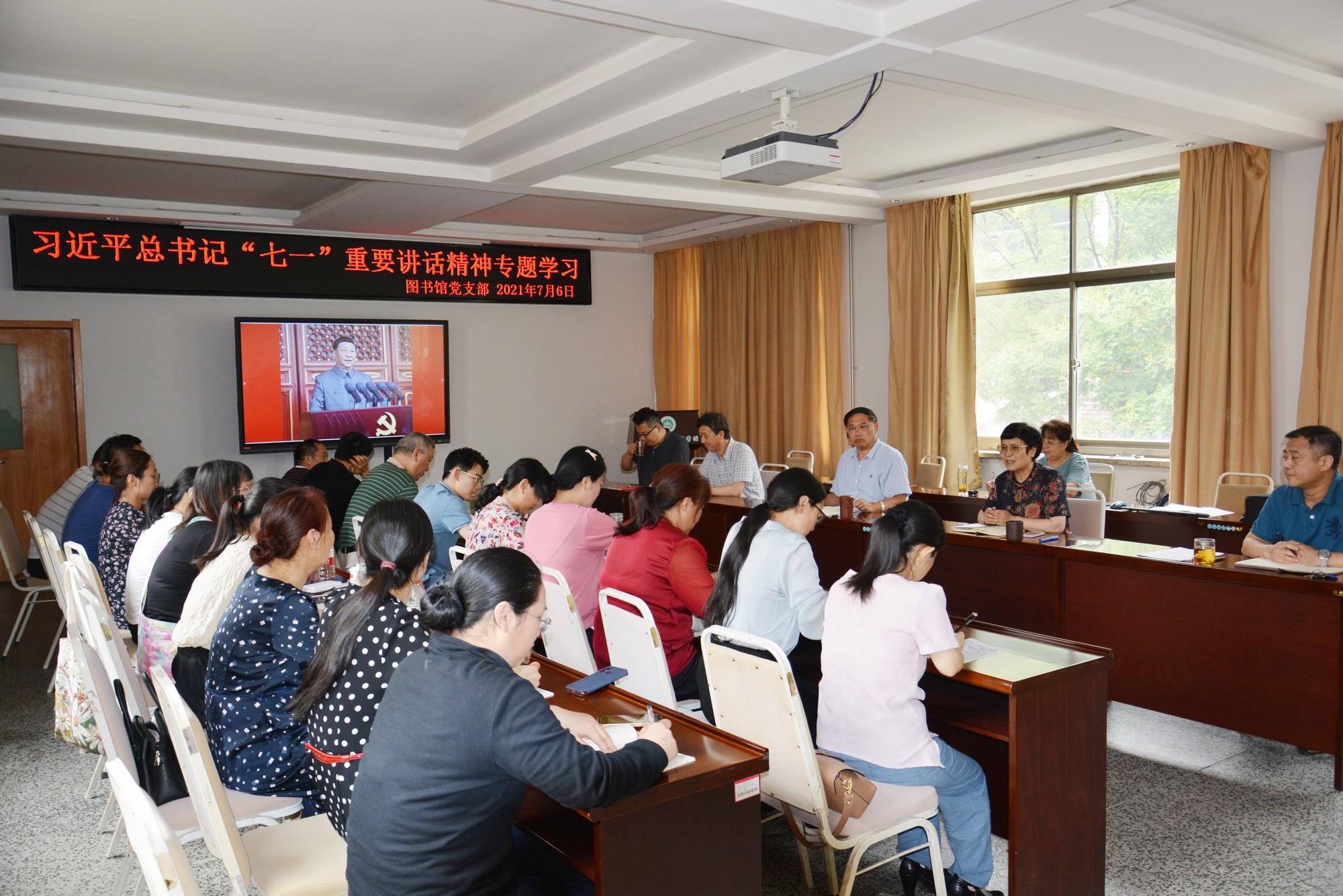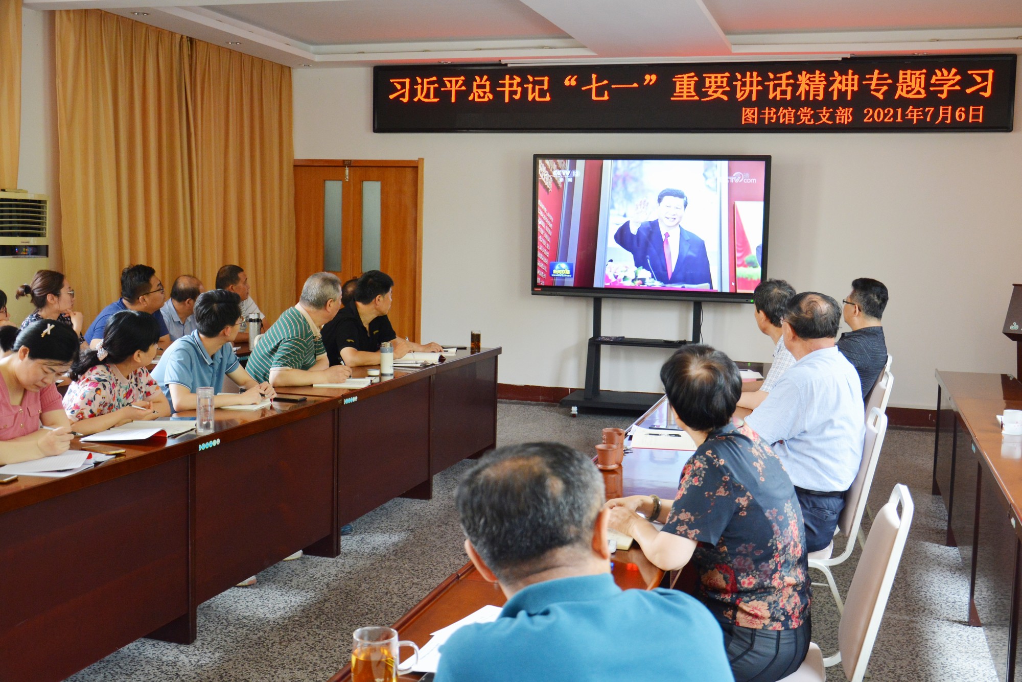 7月6日下午,图书馆党支部召开全体党员大会,深入学习贯彻习近平总书记“七一”重要讲话精神。