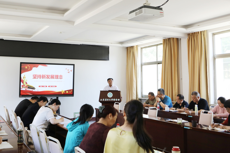 6月30日,图书馆党支部召开全体党员大会,深入开展学习贯彻习近平新时代中国特色社会主义思想主题教育,于军生书记以《坚持新发展理念》为题讲专题党课。