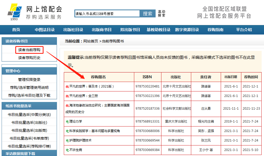 (读者荐购历史页面详情)