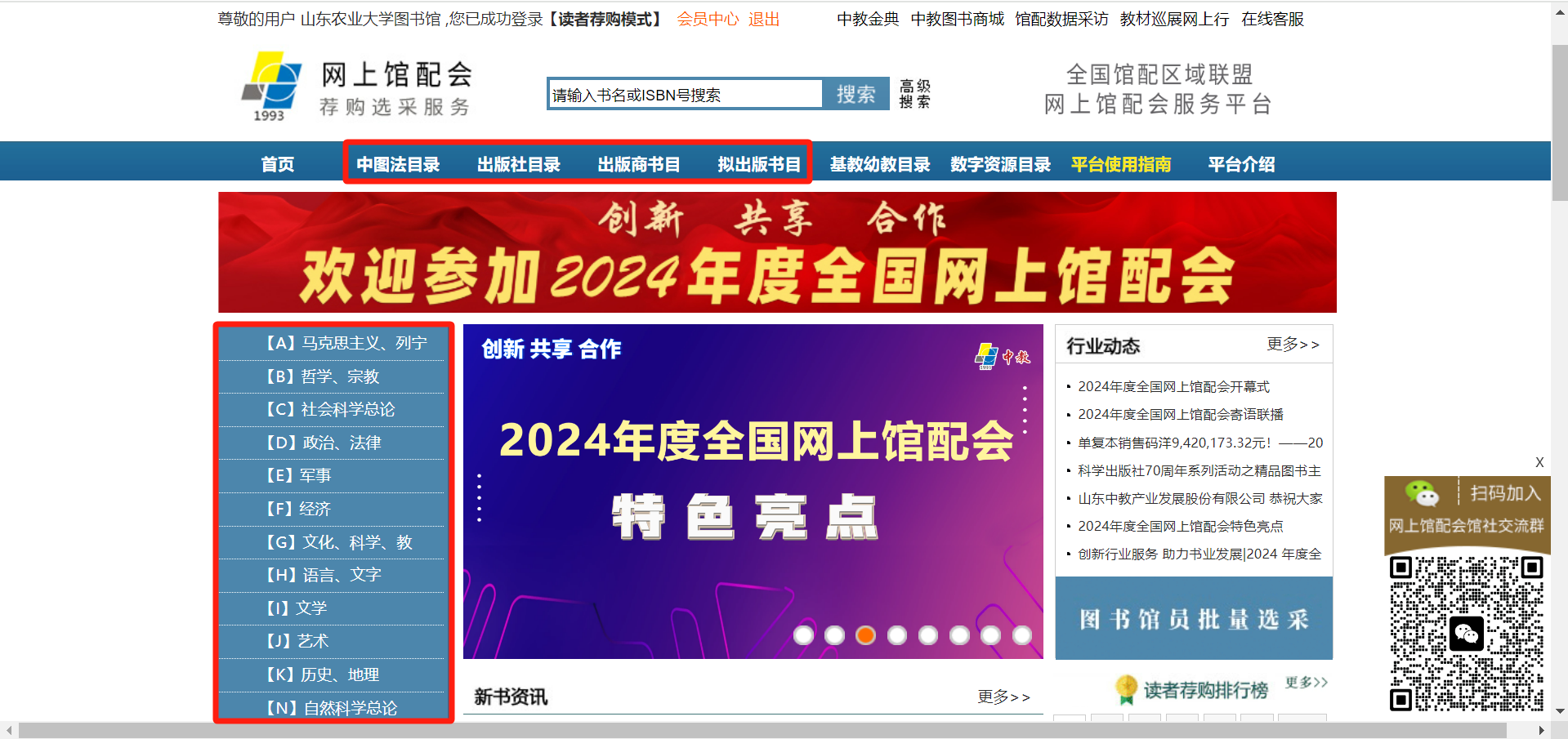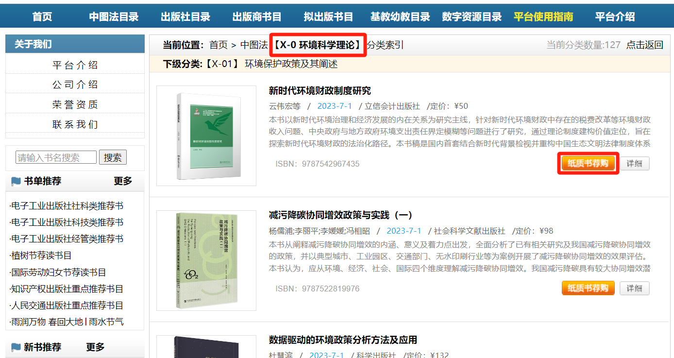 在中文图书荐购平台,读者可在检索框中直接输入想要荐购的书名或ISBN号,或按专业、书名、作者、出版社进行图书搜索,也可通过首页上方菜单栏的“中图法目录”、“出版社目录”等模块或左边聚类栏浏览书目进行荐购。