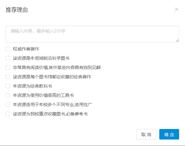注:推荐多本图书请重复打开界面提交