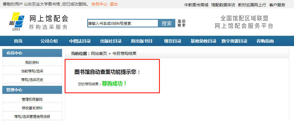(荐购结果:“荐购成功”)