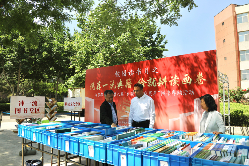 5月9日至10日,学校第八届“你选书·我买单”图书线下荐购活动在岱宗校区和泮河校区举行。山东农业大学副校长单国杰出席活动。