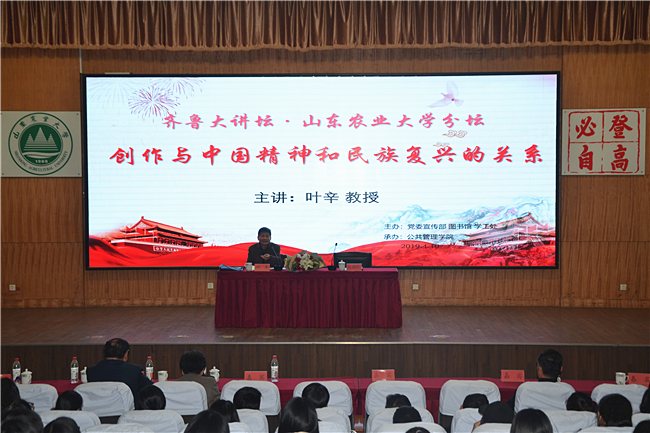4月10日,著名作家叶辛作客“齐鲁大讲坛·山东农业大学分坛”,为在场500余名青年师生作了题为《创作与中国精神和民族复兴的关系》的精彩报告。