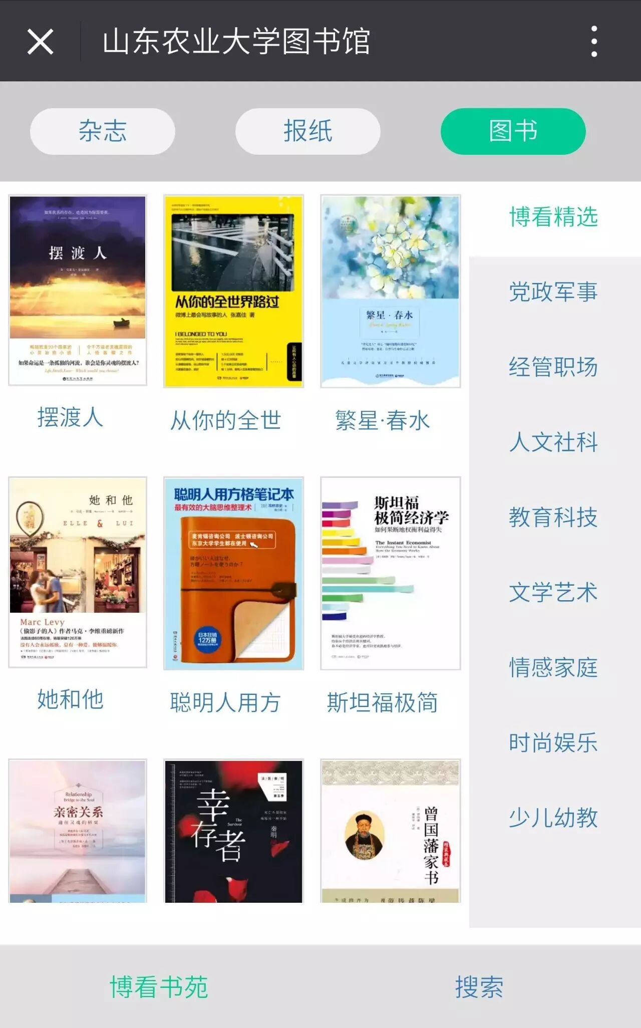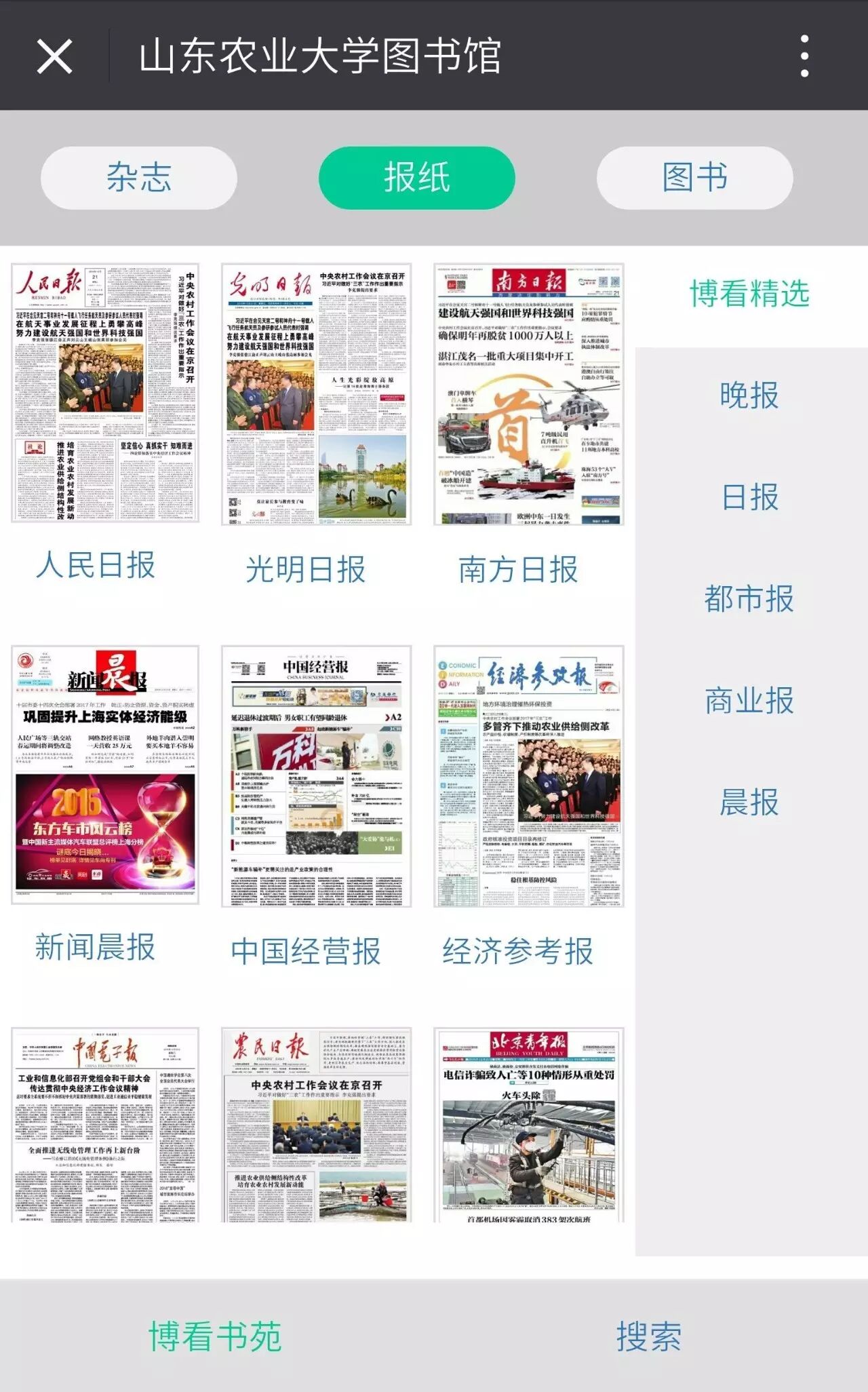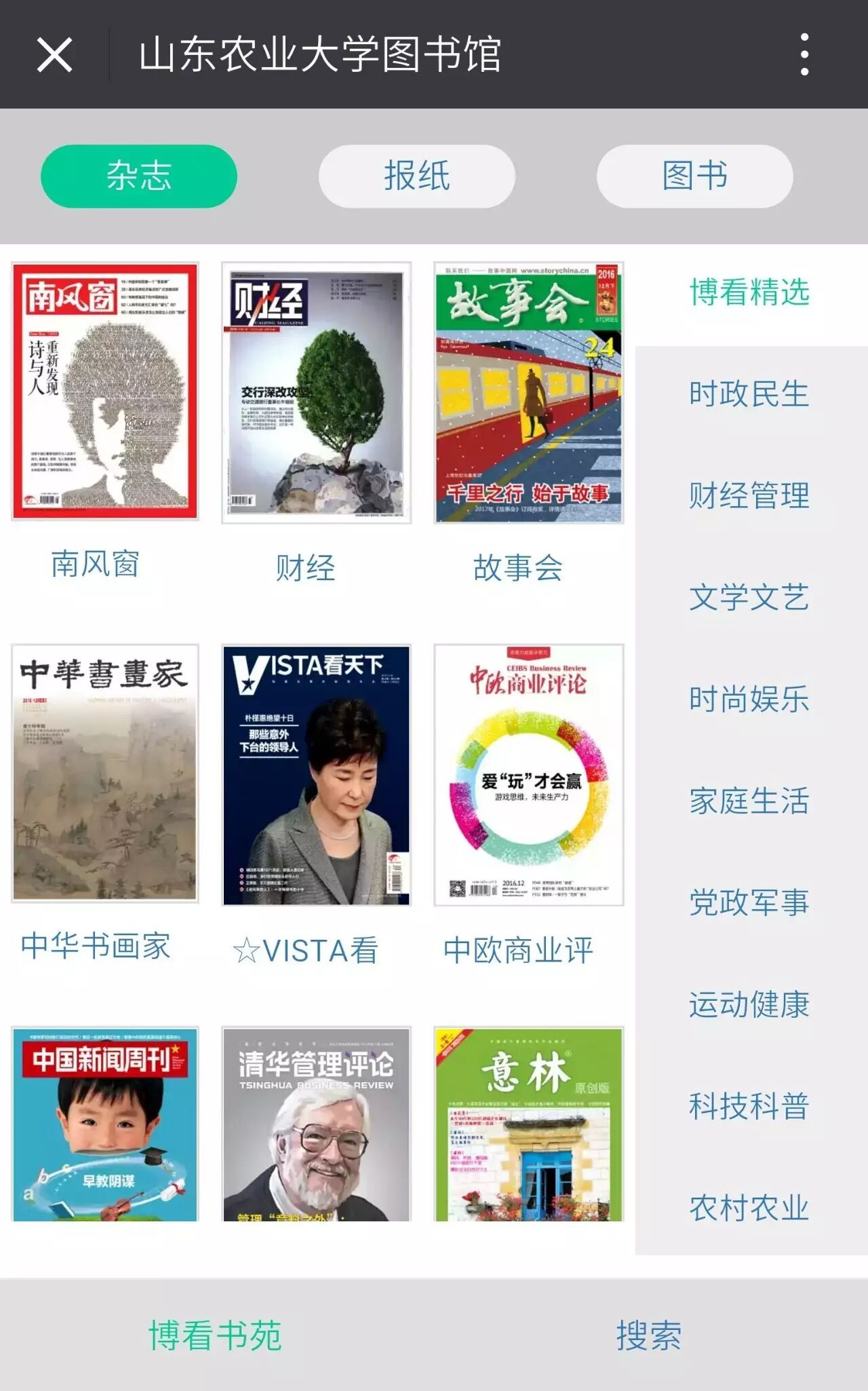 2.博看有杂志,报纸,图书三种资源,在微刊界面点击想要阅读的书籍。