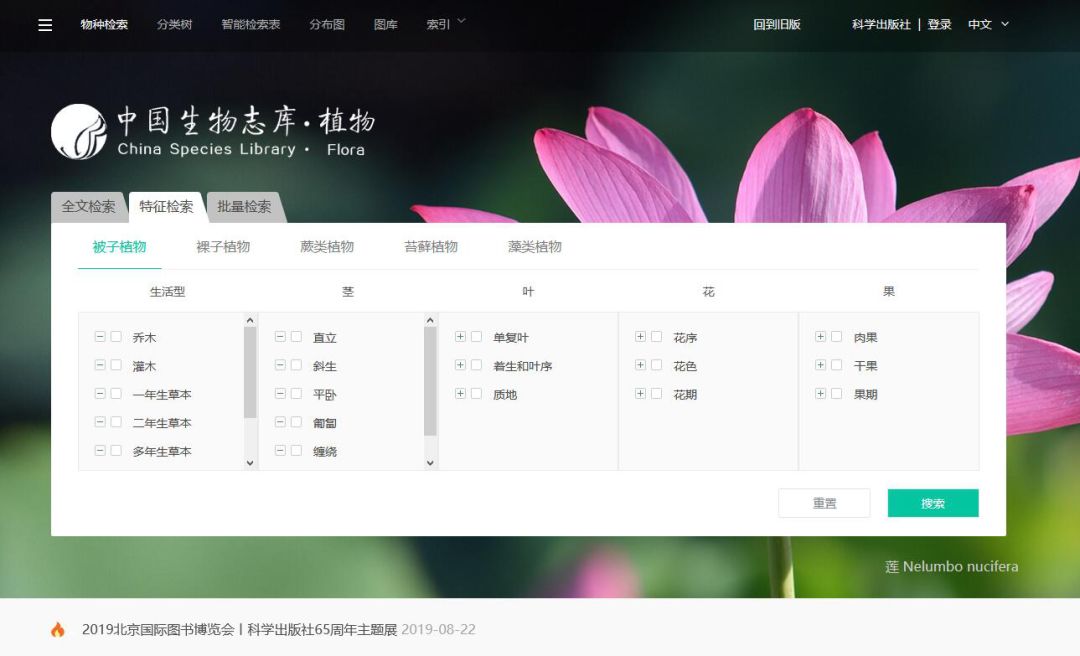 提供生物物种的权威名称、分类地位、形态特征、分布、功用、理论知识等生物学信息的一站式智能搜索。