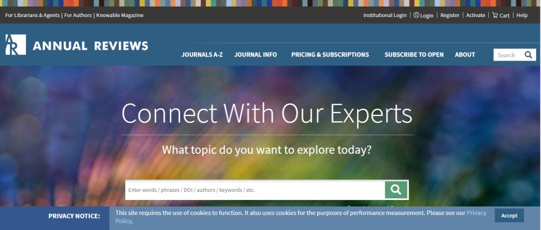 专注权威综述期刊的Annual Reviews开放了数据库中所有综述文献,读者在家可直接访问网址
