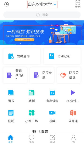 (2)读者使用手机号注册,首页右上角点击输入邀请码“sdnydx”进入图书馆首页。